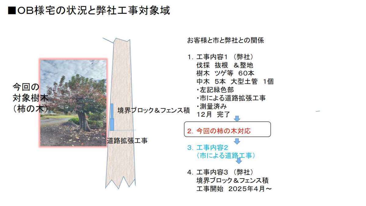 戸建て 大規模リフォーム (記念投稿)OB様の宅地内柿の木は200年の歴史を知っている! 特記事項■記載経緯 現在 弊社のOB様の大規模フェンス工事を受注しています その経過中 都合で 大木の柿の木を伐採しなければならないことになり お客様の心境と 200年も先祖代々見続けた柿の木であり その生命力など 心が動きました。そこで投稿させていただきました。 写真中にコメントを入れましたので 見ていただければ幸いです 以上 場所 神奈川県相模原市 1 / 1 前の施工事例 戸建て マンションでTOTOのキャビネット一体型トイレの洗浄便座交換 次の施工事例 戸建て 相模原初ソラックスパワー社蓄電池(中規模)の設置