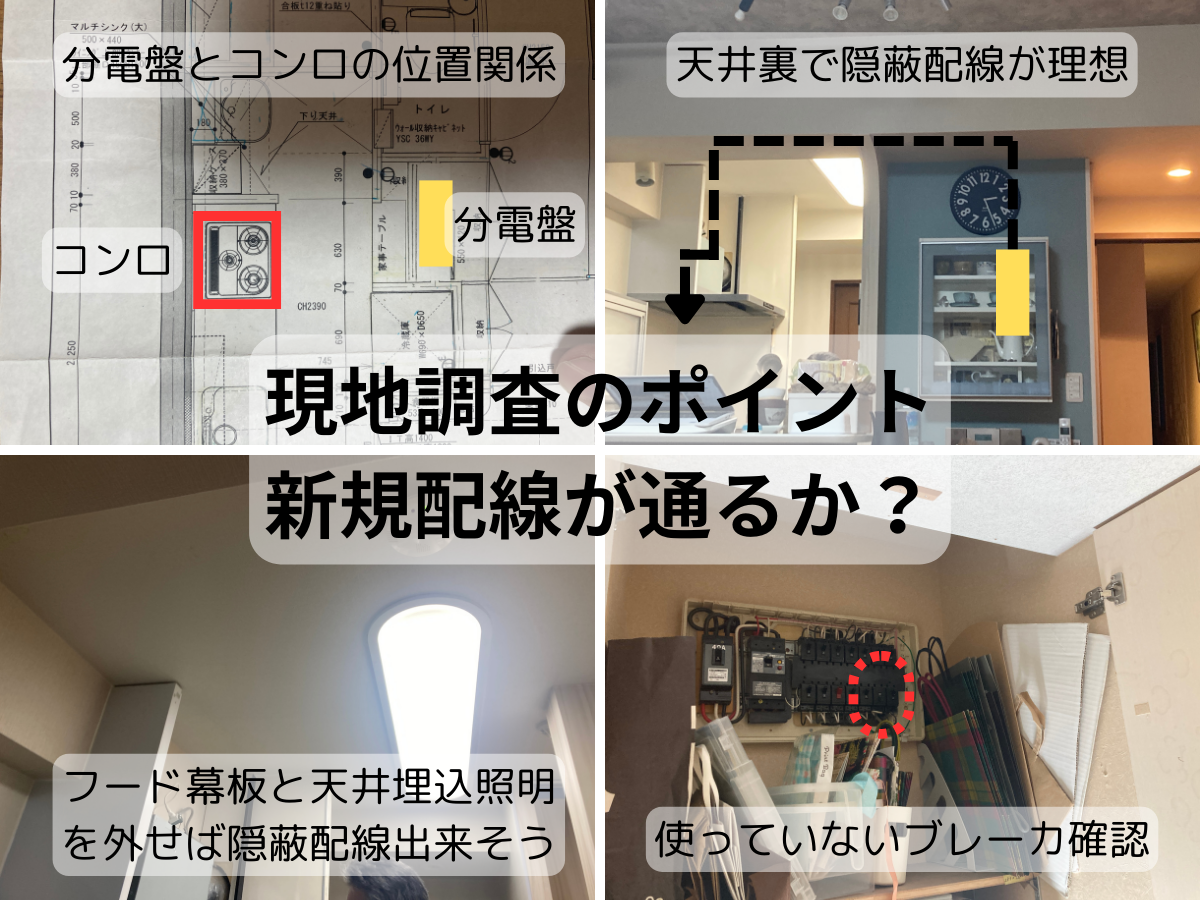 隠蔽配線できるかを重点に現地調査しました。