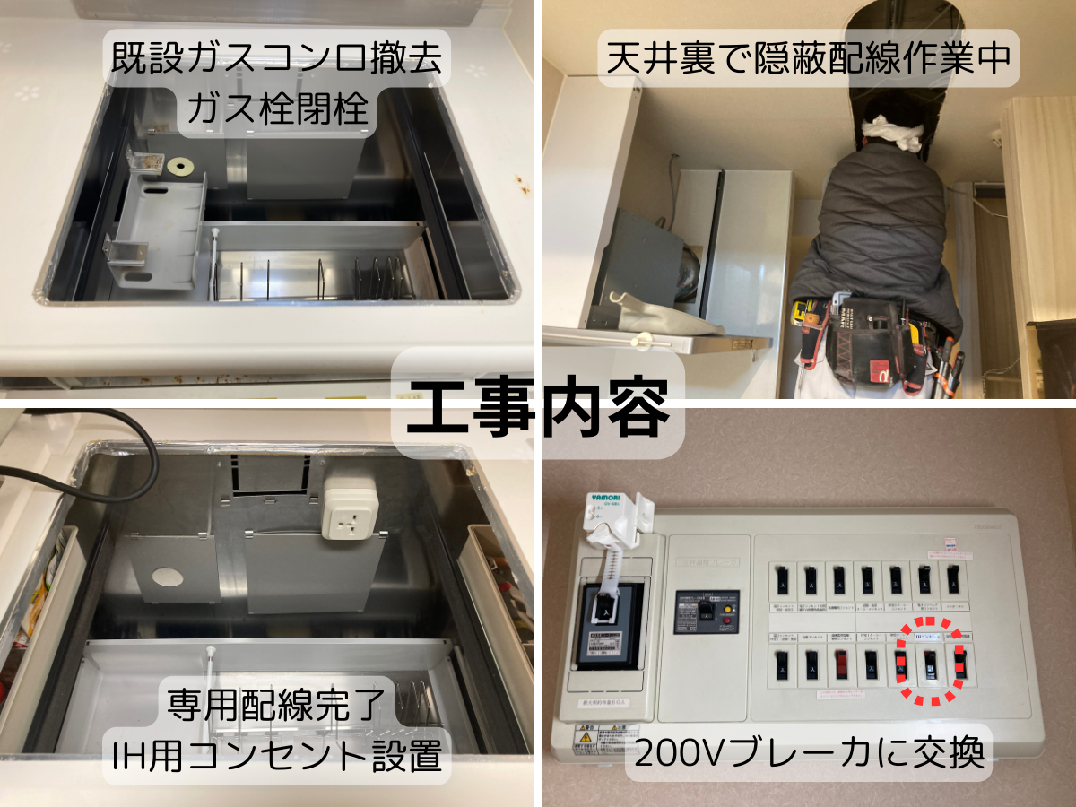戸建てと異なりマンションの場合、専用電源の配線が露出配線になったり、そもそもマンションの規約でIHにできなかったりする場合もあります。