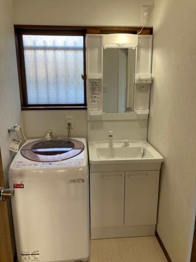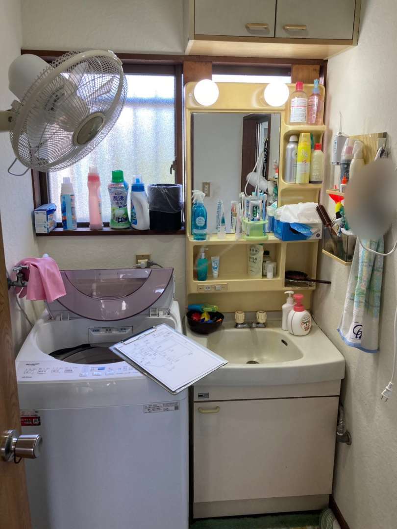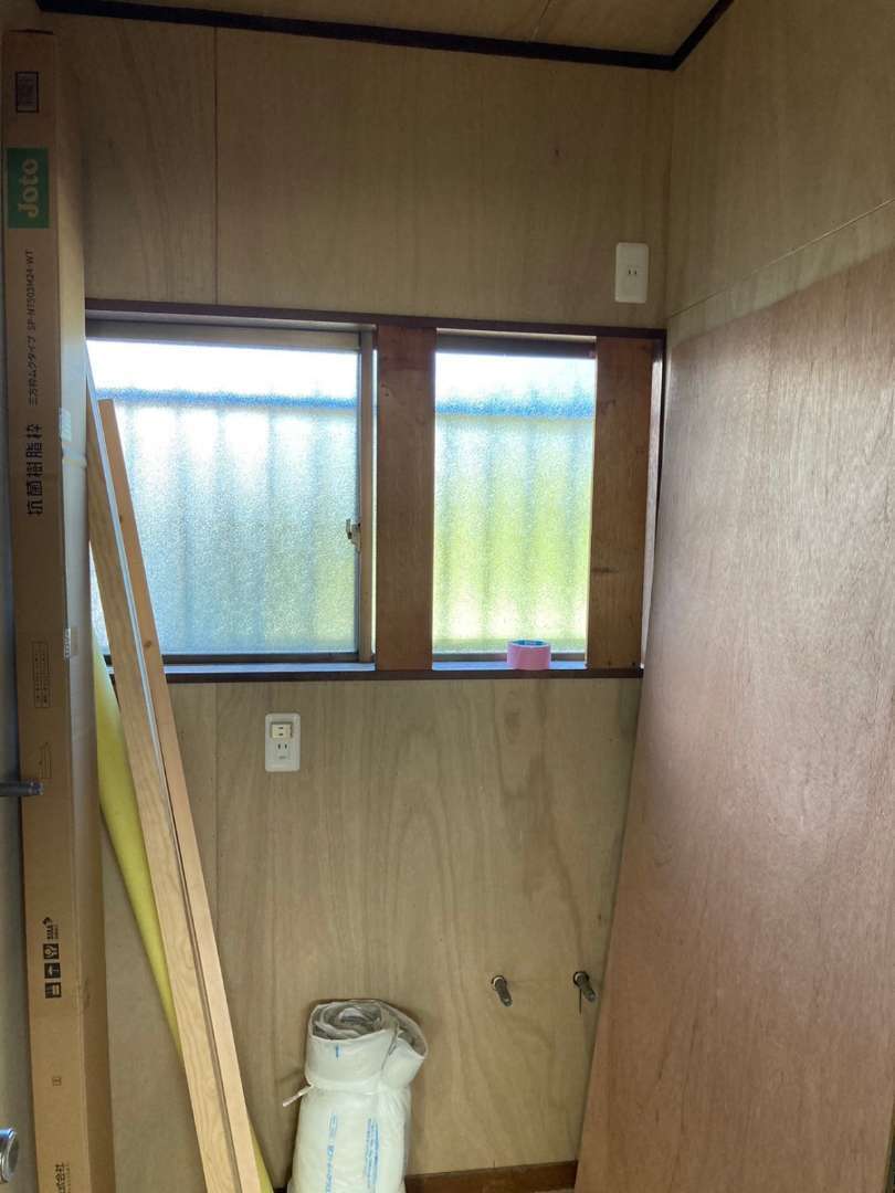 洗面室については、既存の壁が4㎜の薄ベニヤにクロスと塗装が施された仕様でしたので、新たに上からベニヤを上貼りする施工を行っております。